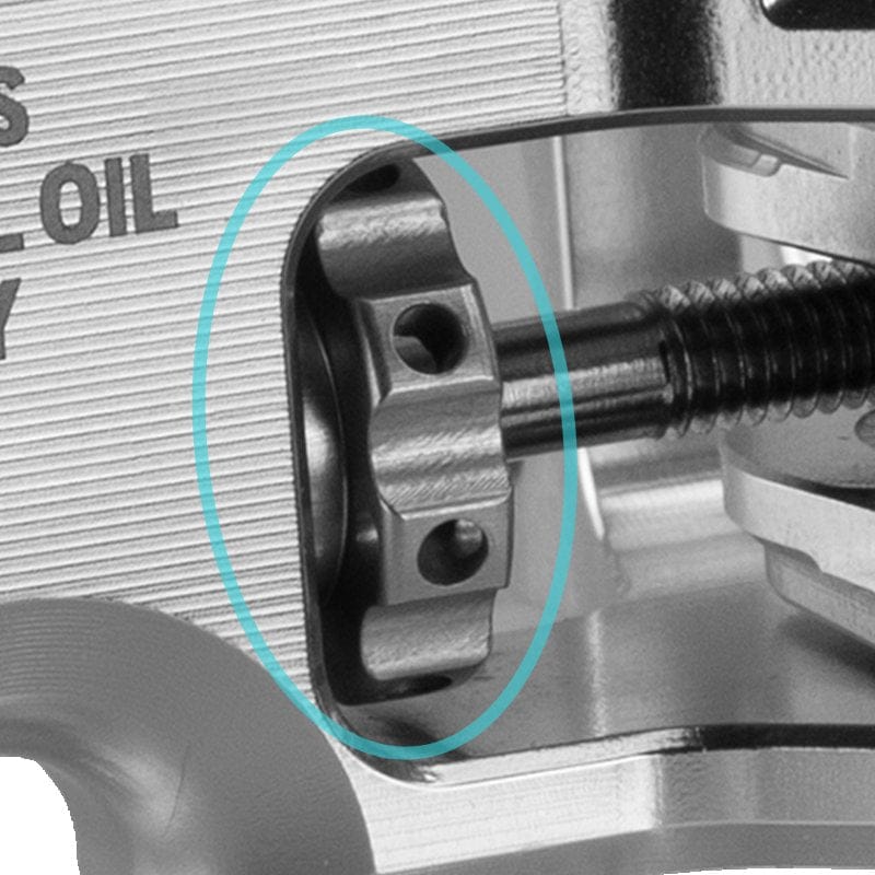 Sur la base du AE l'étrier monobloc avec x2 pistons de 18mm et x2 de 20mm apporte un gain de puissance au freinage.